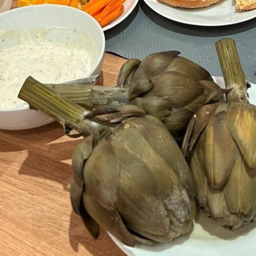 - ארטישוקים לבשל כחצי שעה במים רותחים בסיר גדול.
