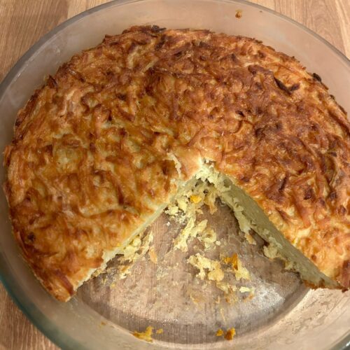 זאת פשטידה שגם יש לה סיפור. היא הגיעה מסבתא רחל בבוצ’ץ’, הועברה לבתה מרים (מינצ’ה) שהעבירה לבנותיה עדית וכרמלה ועכשיו המסורת ממשיכה לדורות הבאים.